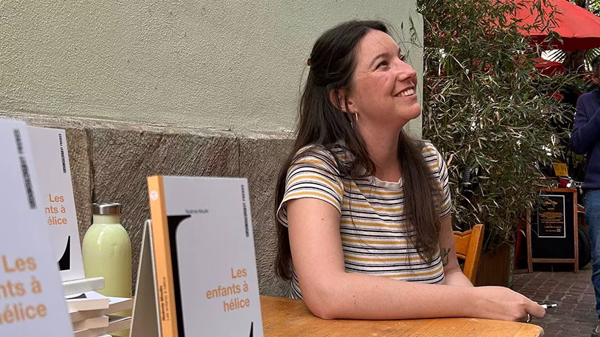 Elle nous propose son livre « Les enfants à hélice » qui raconte l’histoire de personnes qui vivent les choses de façon intense, ici ou ailleurs. Des destins qui se croisent. Ces « enfants » sans cesse en mouvement, qui s’envolent, tourbillonnent de l’intérieur, s’éloignent de la réalité pour y revenir changé.